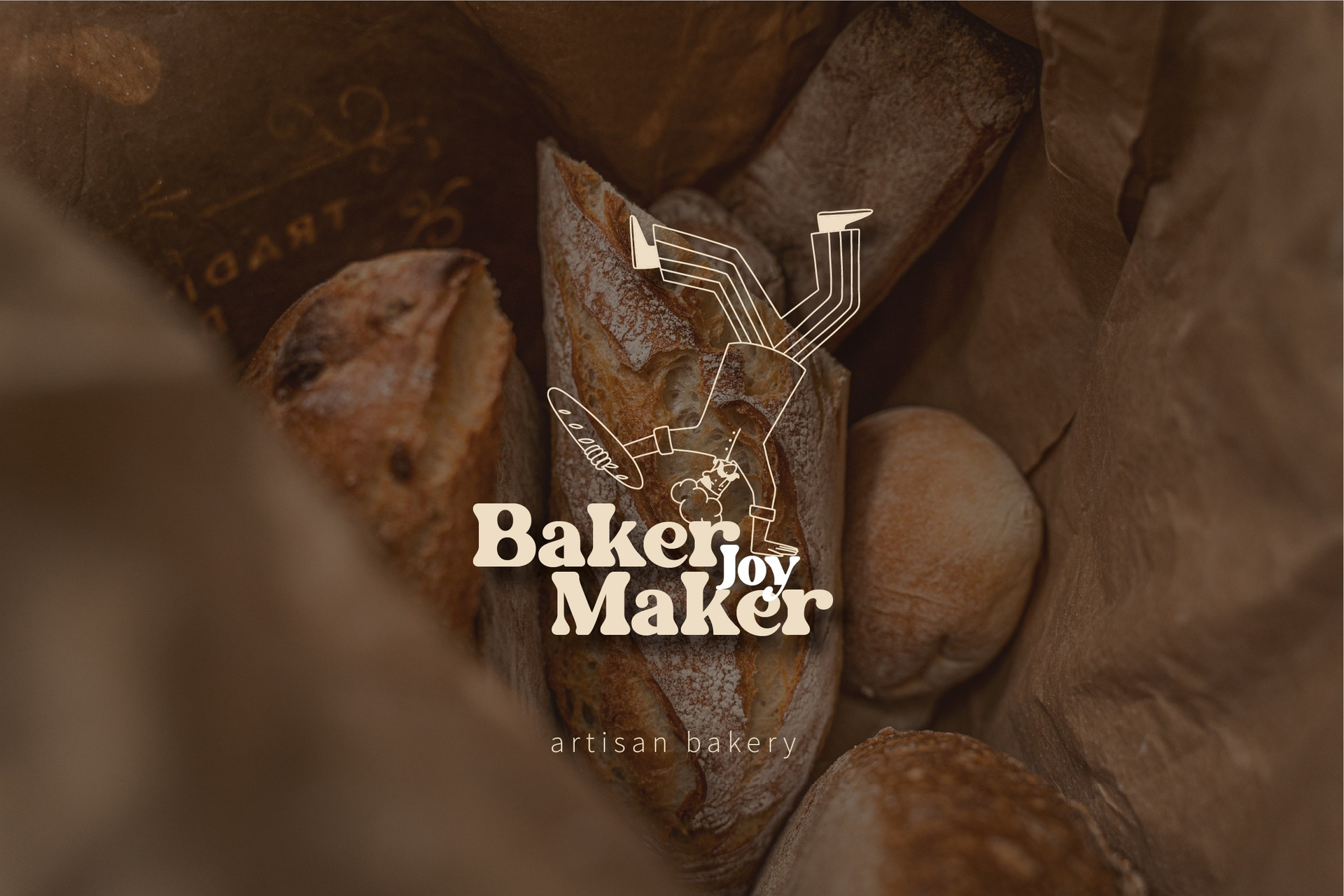 A joyful identity for a small artisan bakery. The illustrated baker brings movement and humor, while the warm tones add a sense of comfort and handcrafted charm.